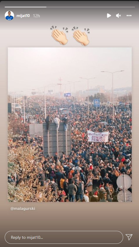 Nije Novak Đoković jedini sportista koji je da vetar u leđa ekološkim organizacijama koje stoje iza protesta, ali svakako njegovo ime jeste najzvučnije. Uostalom, kao i u drugim situacijama kada se nađe na istom mestu sa drugim sportistima. Ovog puta na istom virtuelnom mestu – ili kako već karakterisati društvene mreže – podrške blokadi puteva.
