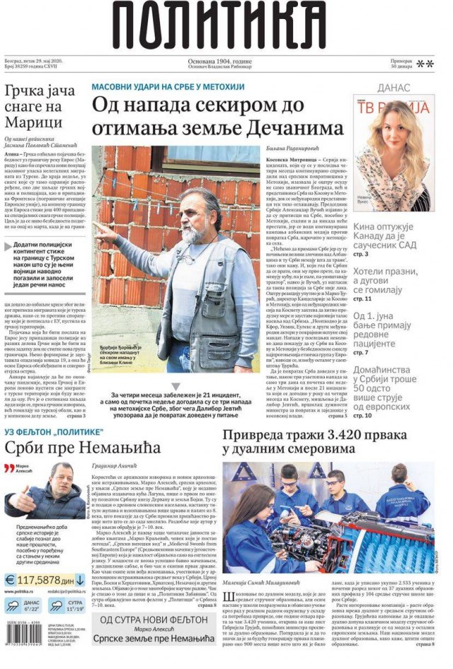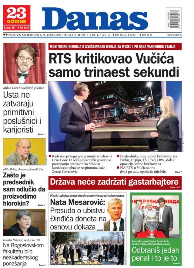 NASLOVNE STRANE DNEVNIH NOVINA: