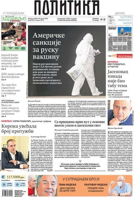 NASLOVNE STRANE DNEVNIH NOVINA: