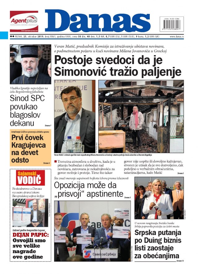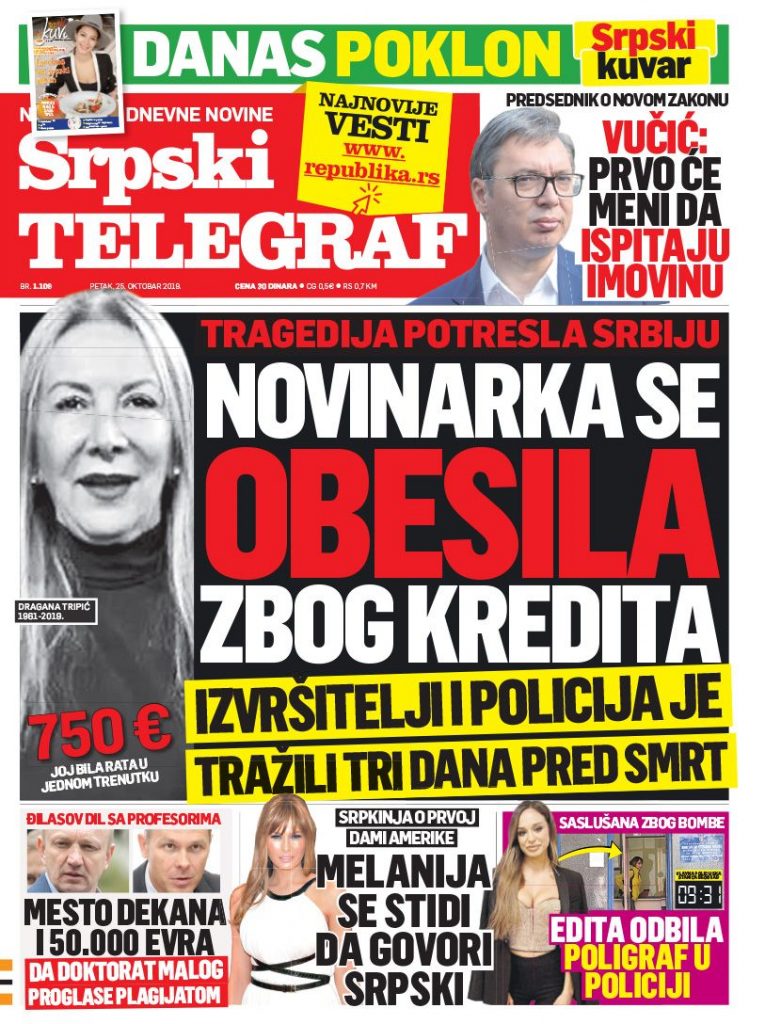 NASLOVNE STRANE DNEVNIH NOVINA: