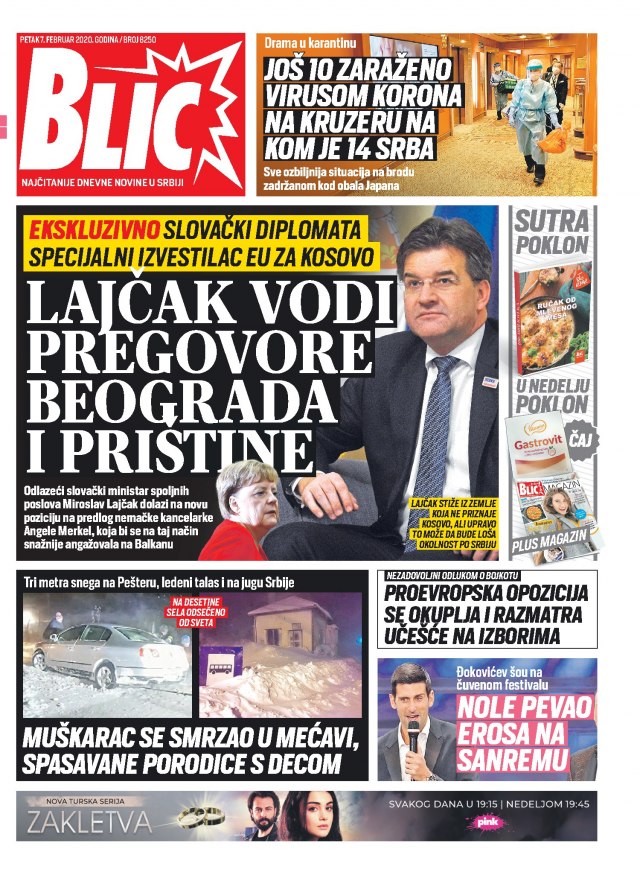 KURTI: SPORAZUM TEŠKO DONETI OVE GODINE – Nova vlada ima za cilj da ukine takse na srpsku robu nakon što se prema Srbiji uvede mera reciprociteta, poručio je u intervjuu za Glas Amerike na albanskom novi kosovski premijer Aljbin Kurti, prenosi KoSSev. Govoreći o dijalogu sa Beogradom navodi da nije nemoguće postići dogovor u toku ove godine, ali da ne očekuje bilo kakav suštinski dijalog, niti brze rezultate, jer je Srbija na pragu izbora.