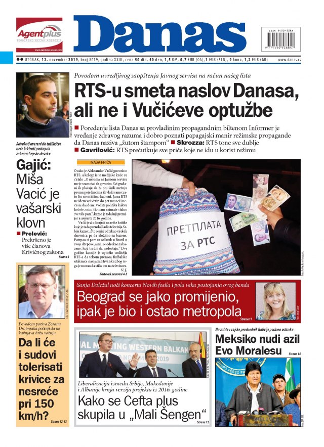 re: RTS-u smeta naslov iz Danasa, ali ne i optužbe predsednika Bitno je shvatiti da se sa pravom da RTS iznuđuje naplatu TV pretplate stvara privid da RTS objavljuje objektivne informacije bitne građanima Srbije, dok RTS u stvari pretežno objavljuje neistinite i pristrasne informacije koje idu samo u prilog aktuelnoj vlasti.