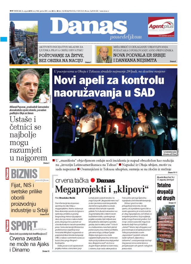 TRAMP OSUDIO NAPADE U TEKSASU I OHAJU – Američki predsednik Donald Tramp osudio je dve masovne pucnjave, u Ohaju i Teksasu, u kojima je ubijeno najmanje 29 ljudi tokom vikenda, rekavši da za „mržnju nema mesta“ u Sjedinjenim Američkim Državama.