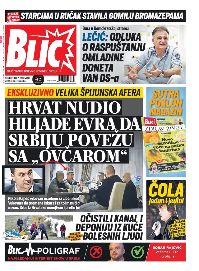 NASLOVNE STRANE DNEVNIH NOVINA: