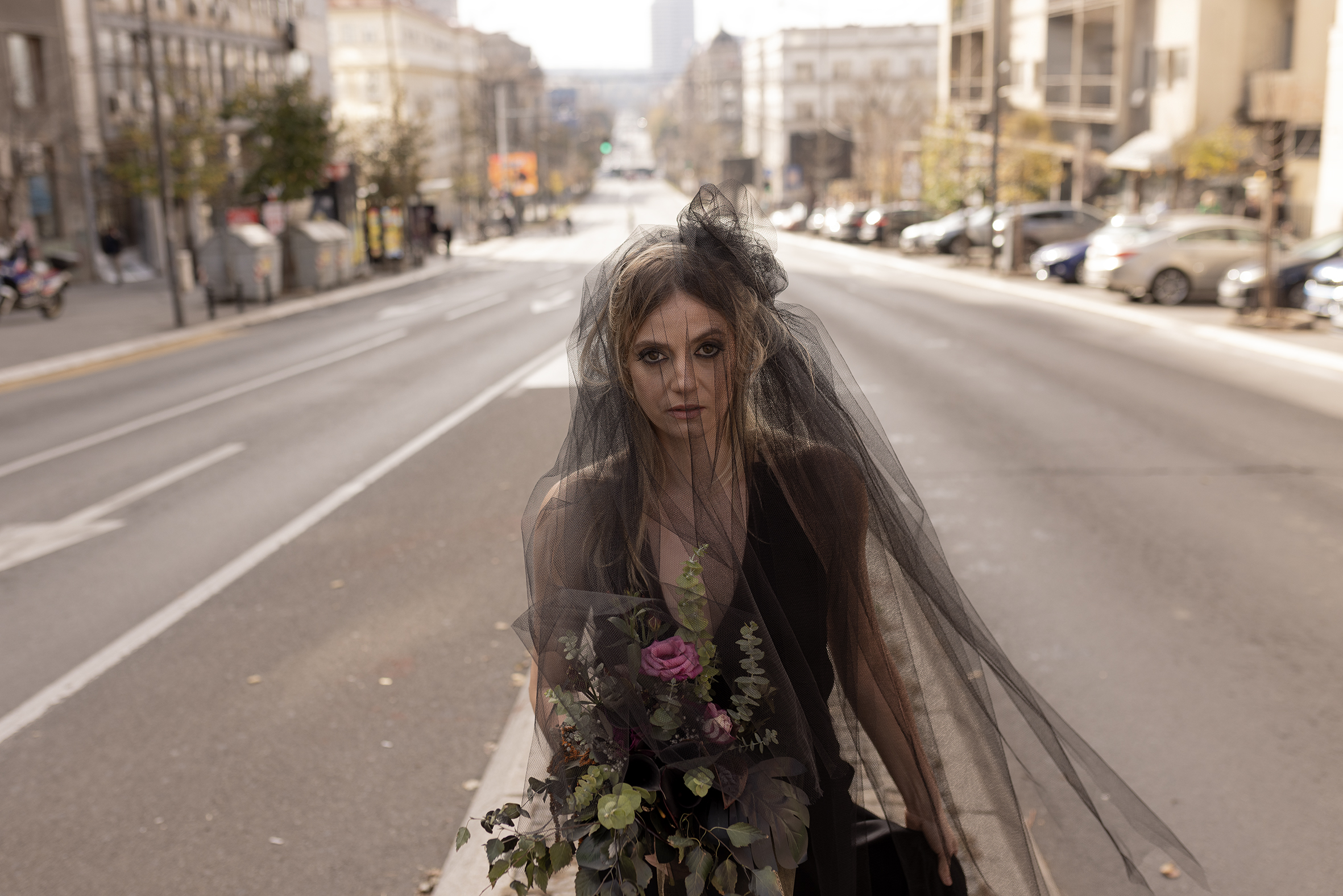 Prolaznici u centru Beograda prethodnih dana su, na nekoliko lokacija, mogli da primete devojku u elegantnoj crnoj venčanici, sa velom i bidermajerom u ruci. Njena pojava izazvala je pažnju, ne samo zbog neuobičajene boje haljine, već i zbog atmosfere koja je podsećala na kadar iz filma.