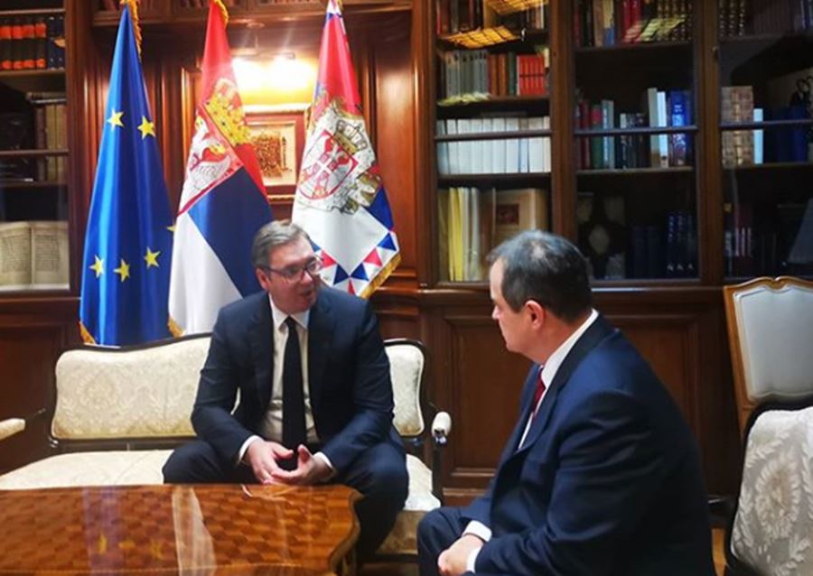 Predsednik Srbije Aleksandar Vučić i još uvek aktuelni ministar spoljnih poslova Ivica Dačić sastali su se danas u Predsedništvu, posle sastanka lidera socijalista sa mandatarkom za sastav nove Vlade Anom Brnabić.