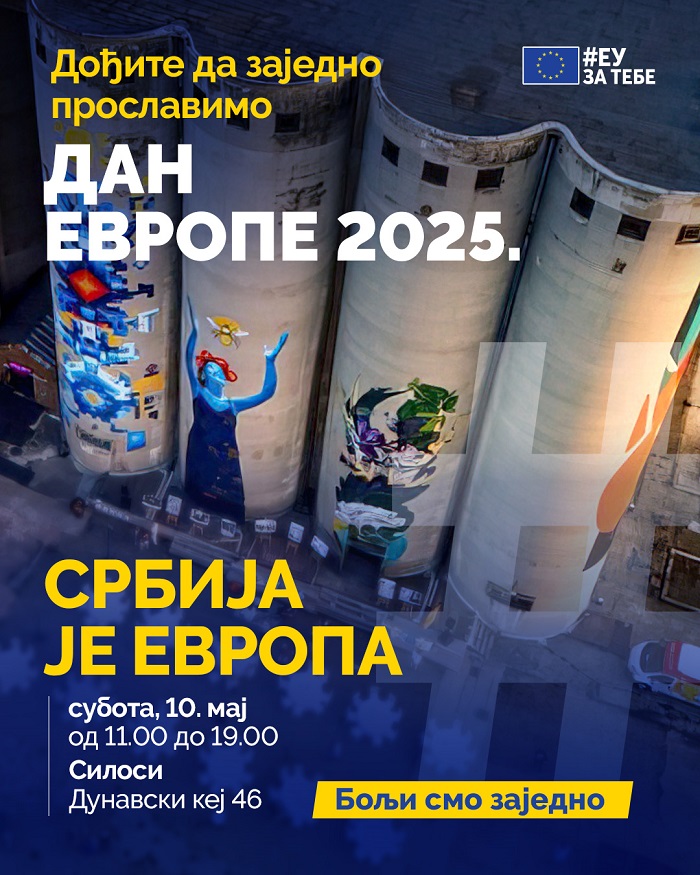 Povodom obeležavanja Dana Evrope Delegacija Evropske unije u Srbiji organizuje događaj koji je otvoren za javnost u subotu, 10. maja od 11.00 u Silosima, Dunavski kej 46, Beograd.
