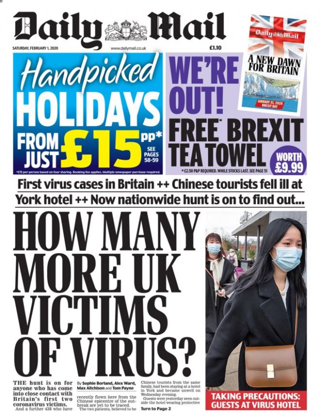 Dejli mejl odlučio je, međutim, da fokusira pažnju na koronavirus koji je registrovan kod dva pacijenta u Britaniji. Ipak, oni su posebno izdanje posvetili Bregzitu.