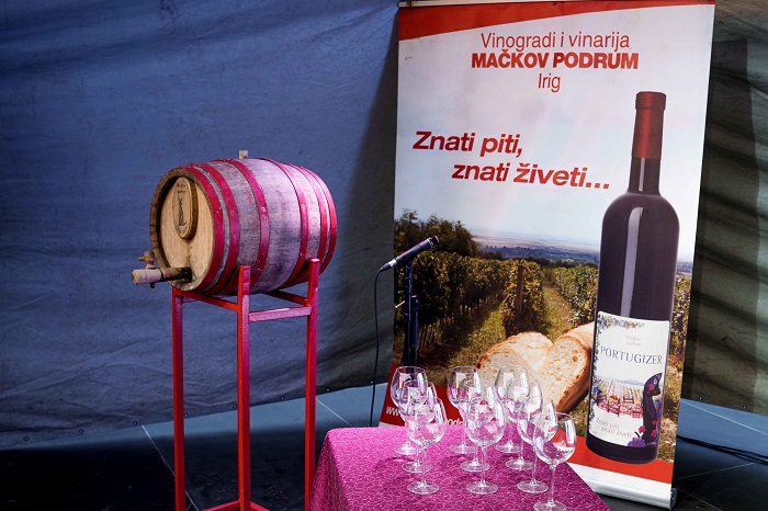 Tomislav Stanojčev, predsednik Skupštine opštine Irig, i Sava Jojić, osnivač Mačkovog podruma, su svečano otvorili 18. Mačkov dan mladog portugizera.