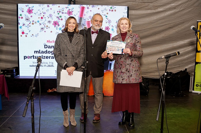 Direktorka Srpske čitaonice u Irigu, Milica Uverić, je proglasila pobednike na konkursu za najlepšu pesmu o vinu. Prvu nagradu za pesmu „Jesenji Jesenjin“ je osvojila Jasna Milenović iz Sremske Kamenice. Drugu nagradu je dobila Razumenka Marković iz Požege za pesmu „U drugoj koži“ a treću Dragan Veličković iz Grdelice za pesmu „Uspavana hladovina“. Pohvaljena je i jedna pesma, „Vino i on“, autorke Živke Nenadić iz Užica. Za učešće na konkursu su pohvaljene i tri autorke van našeg govornog područja, Kostadinka Vitanova i Marija Čelebijeva iz Severne Makedonije i Ani Stajkova – Ivanova iz Bugarske.