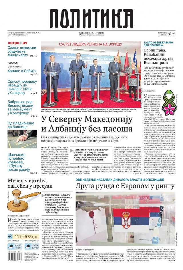 NASLOVNE STRANE DNEVNIH NOVINA: