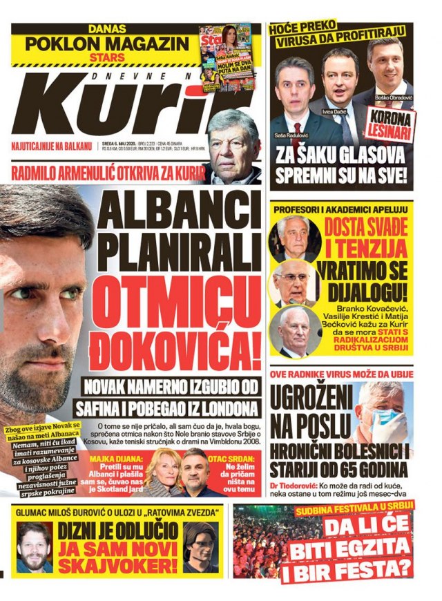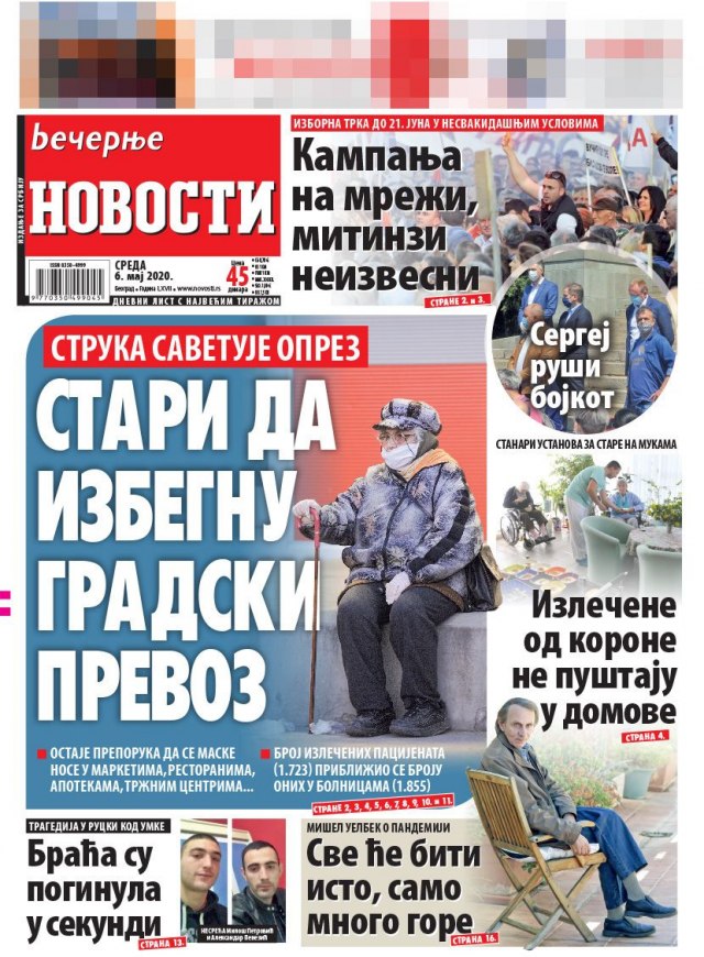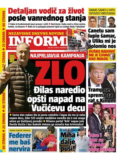 NASLOVNE STRANE DNEVNIH NOVINA: