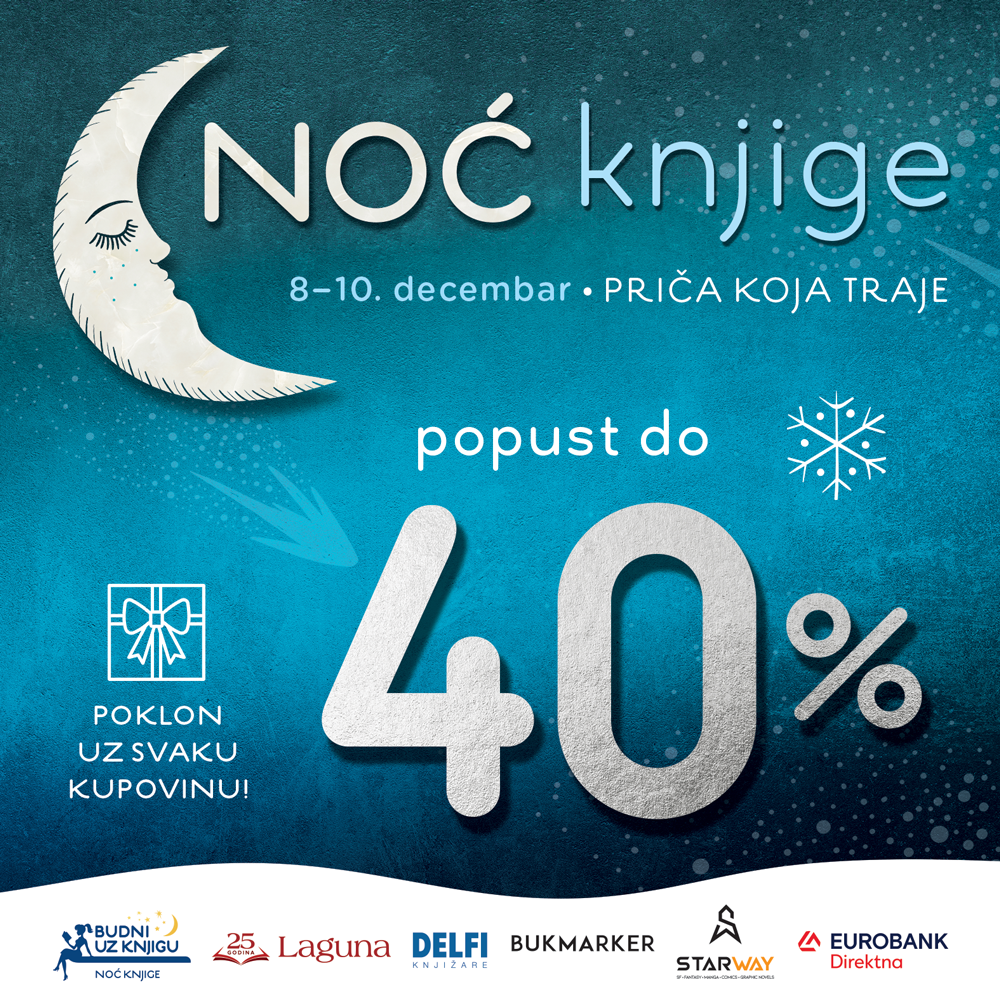 Regionalna kulturna manifestacija „Noć knjige“ održaće se po 29. put od 8. do 10. decembra 2023. godine u organizaciji Lagune i knjižarskog lanca Delfi pod pokroviteljstvom Eurobank Direktne. Kultura i obrazovanje predstavljaju stubove korporativne društvene odgovornosti Eurobank Direktne, a kroz podršku ovom značajnom događaju, Banka nastavlja da promoviše važnost čitanja.