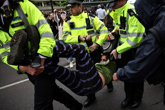 U istočnom Londonu, demonstranti su nosili natpise „Volim migrante, mrzim rasizam“ i „Zaustavi desnicu“.
