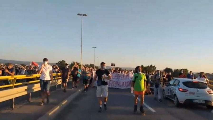Šetnju su nastavili ka autoputu, u želji da ga blokiraju. Međutim, odustali su od te namere jer je policija postavila kordon kod Kaćke petlje na samom izlasku na autoput i onemogućila im prolaz.