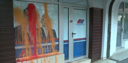 (Beta) – Demonstranti su večeras razbili jedan izlog na prostorijama Srpske napredne stranke (SNS) tokom protesta „Buna protiv mafije“ u Novom Sadu i zasuli te prostorije balonima punim farbe različitih boja. Oni su na prostorije SNS-a bacili balone sa žutom, zelenom, narandžastom i crvenom farbom. Političari Bilajan Stojković i Radivoje Jovović iz stranke Zajedno, kao … Nastavi sa čitanjem Demonstranti u Novom Sadu razbili izlog i zasuli farbom prostorije SNS-a
