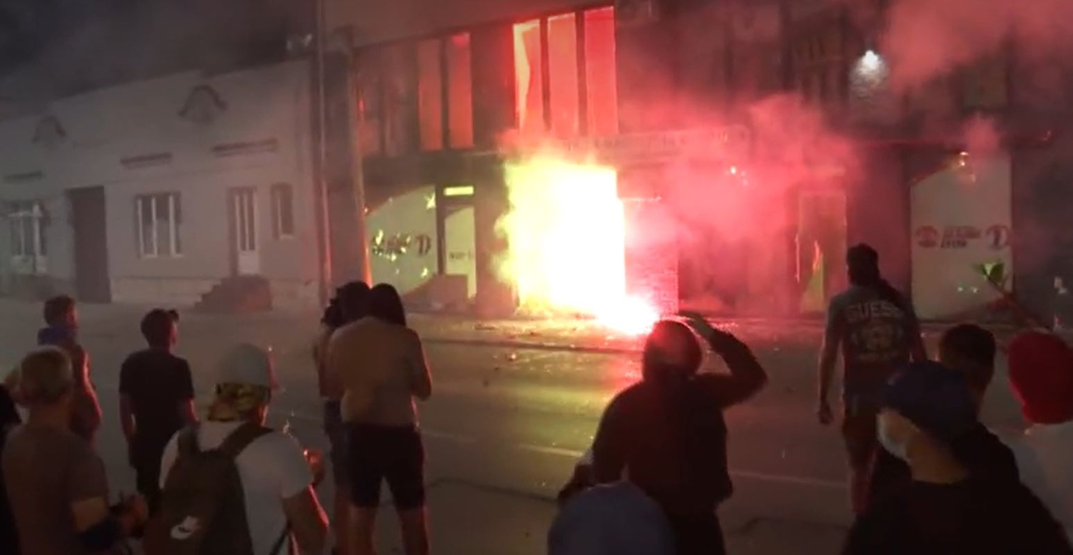 U prostorijama i ispred njih nije bilo ni policije ni simpatizera SNS-a, a vatrogasci rade na gašenju požara, javlja reporterka agencije Beta.