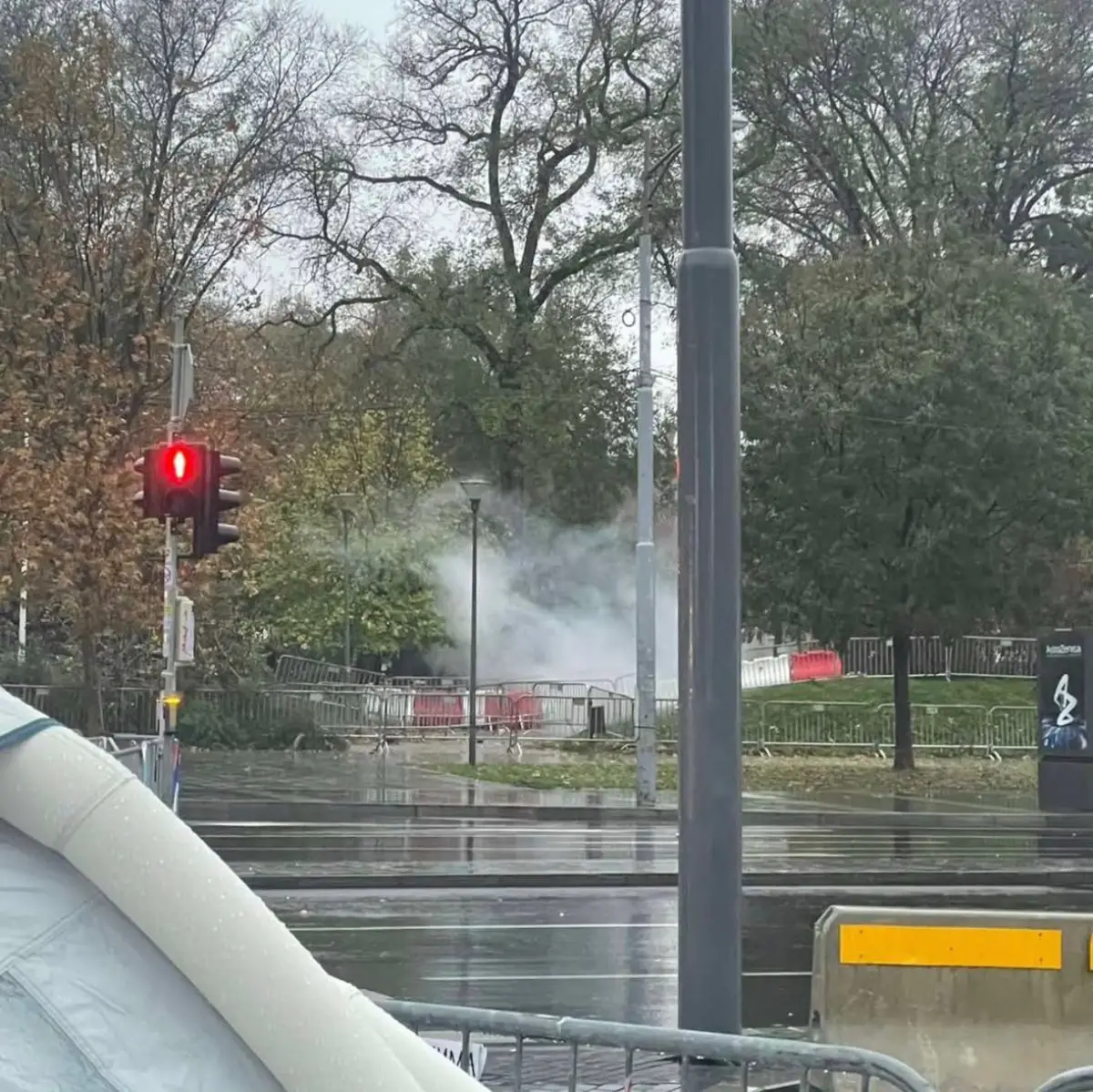 Dijana Hrka objavila je na svom instagram-nalogu da je jutros, oko 6.40, bačen topovski udar, a kako se vidi na fotografiji koju je podelila, veliki dim se širio u delu Pionirskog parka koji se jasno uočava sa mesta gde štajkuje glađu.
