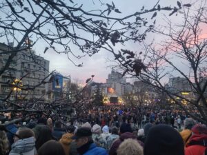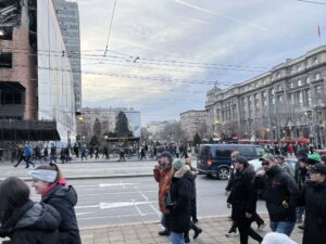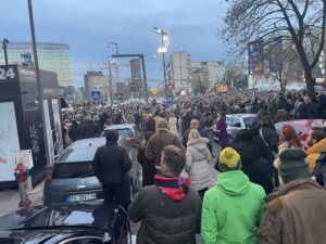 17:22: Među protestantima se šire glasine da se ide na RTS, studenti preko megafona govore da to nije plan i da nije tačno, javlja Veljko MIladinović.