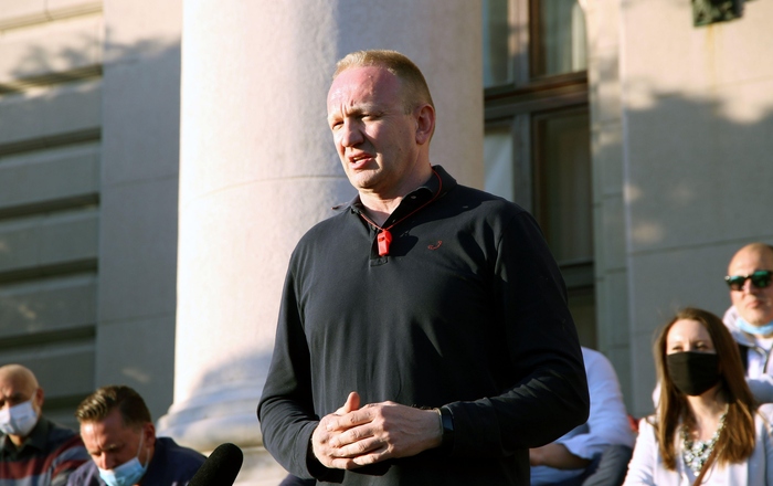 Najavio je da će večerašnji protest biti miran kao i svi do sada, kao i da ne žele da dozvole da „neko ko je pokrao izbore proglasi to legitiminim i legalnim“.