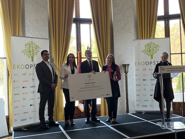 Ambasada Francuske u Srbiji i njeni partneri: Institut Veolia, Saint-Gobain, Veolia, Decathlon, Wiener Stadtische, NALED, SKGO i Delegacija Evropske Unije, zajednički su dodelili nagrade pobednicima konkursa „Ekoopština” u četvrtak 5.oktobra 2023. u ambasadi Francuske u Beogradu.