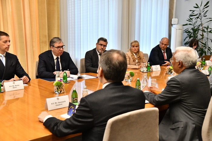 Kako je prenela Radio-televizija Srbije (RTS), Košta i Vučić razgovaraju o ključnim pitanjima odnosa Srbije i Evropske unije, kao i o izazovima Srbije na evropskom putu.