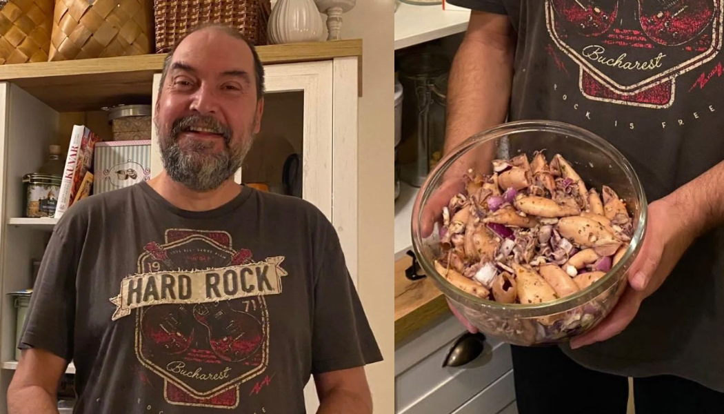 Zatim se u posebnom sudu pomešaju sa svim sastojcima, iseckanim belom lukom, iseckanim crvenim lukom, preliju maslinovim uljem i balzamikom, i na kraju sa čašom suvog crnog vina. To se sve dobro pomeša, malko ohladi i servira.