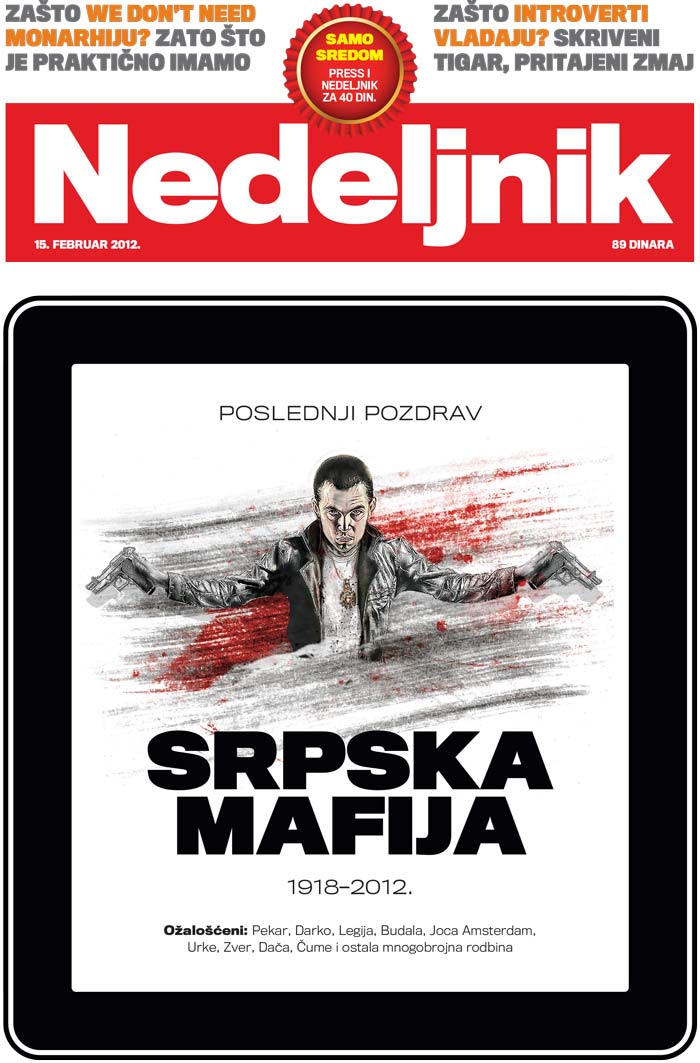 Veliki tekst o istorijatu srpske mafije čitajte u jubilarnom 400. broju Nedeljnika koji je na kioscima od četvrtka 12. septembra. Svi čitaoci na poklon dobijaju Njujork tajms na srpskom jeziku.
