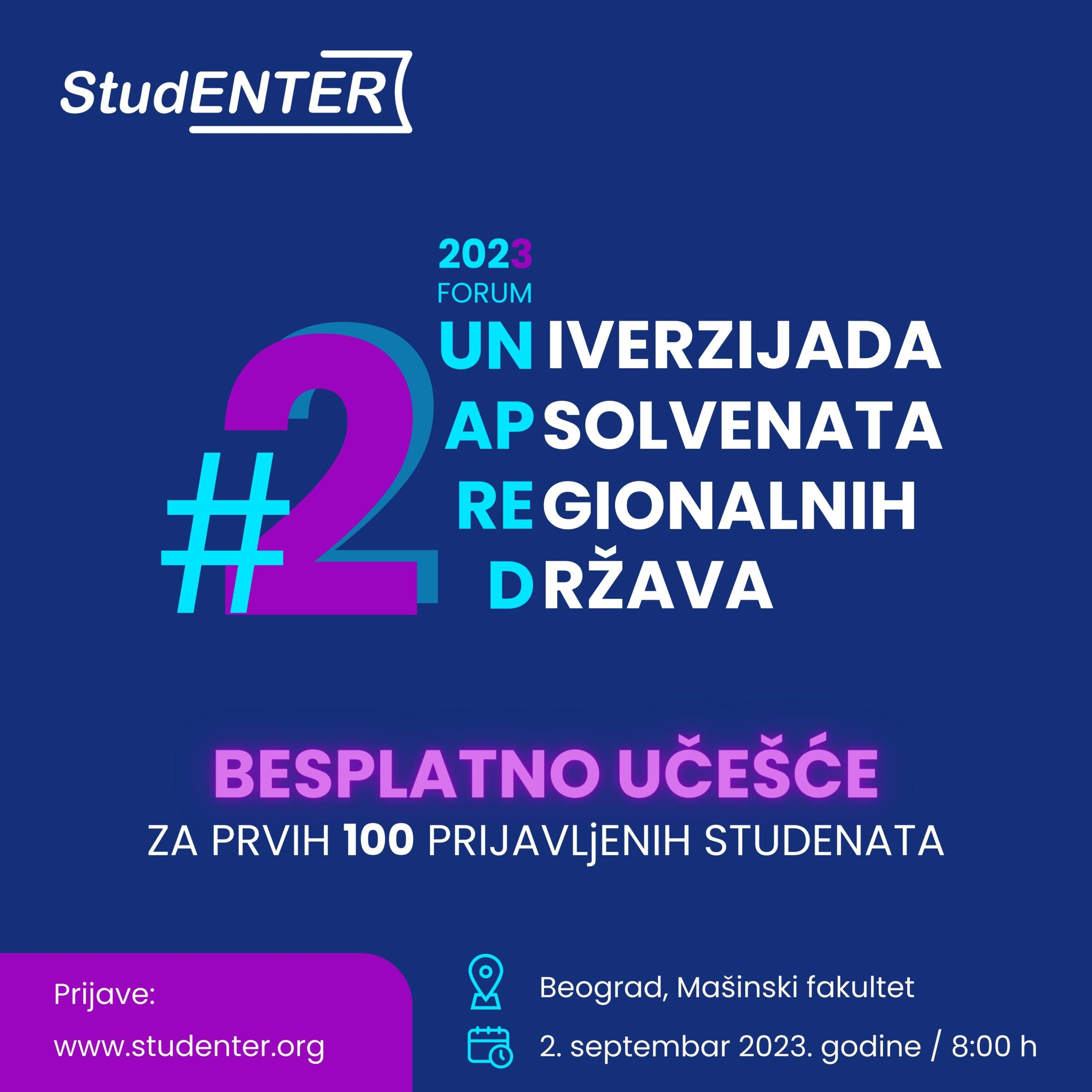 - Nakon sjajnih utisaka posle Foruma UNAPRED prošle godine, izuzetno mi je drago da se i ove godine družimo na drugoj po redu UNiverzijadi APsolvenata REgionalnih Država. Pred nama je Forum UNAPRED 2023 – koji će i ove godine okupiti kompanije, eksperte iz različitih oblasti, kao i predstavnike akademskog sveta, studente, apsolvente, visokoobrazovane kandidate iz različitih naučnih polja. Poseban segment biće NETWORKING – a to su štandovi kompanija – nalik mini sajmu privrede – gde će direktno svako od učesnika imati priliku da razgovara sa predstavnicima kompanije. Sa posebnim zadovoljstvom ističem da je prošle godine značajan broj studenata na taj način sebi obezbedilo praksu, a kasnije i zaposlenje. Prošle godine smo istakli da verujemo da će događaj postati tradicionalan, i drago nam je da tim putem i idemo. A kako je jedan od glavnih ciljeva i StudENTER-a i Foruma UNAPRED da pomognemo studentima da se ostvare u profesionalnom segmentu, omogućili smo besplatne kotizacije za prvih 100 prijavljenih studenata. Pozivam ih da se prijave što pre putem linka i obezbede svoje mesto na Forumu UNAPRED.