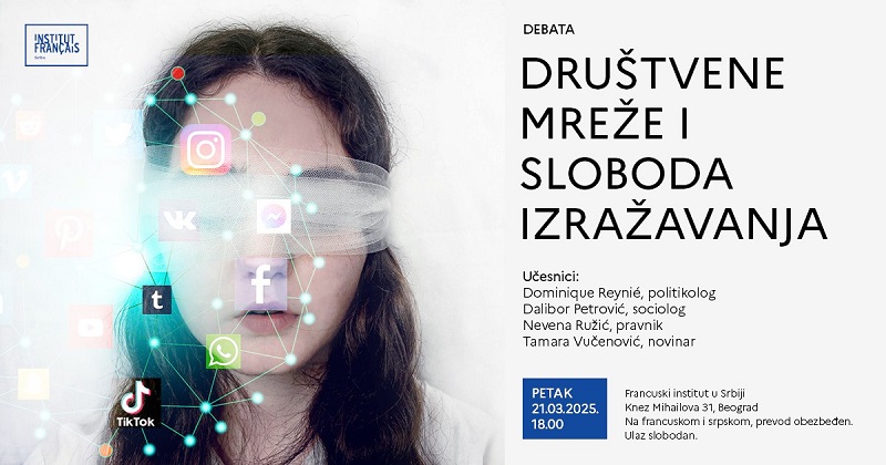 Francusko-srpski razgovor na temu Društvene mreže i sloboda izražavanja biće organizovan u petak 21. marta u 18 sati u Francuskom institutu u Beogradu (Knez Mihailova 31), koji je organizator ovog događaja. Biće reči o prednostima i sve češćoj upotrebi društvenih mreža kao mesta anonimnog ili javnog obraćanja, ali i o zloupotrebama mogućnosti slobodnog izražavanja. Učesnici će razmatrati ovu temu sa više aspekata i pokušati da odgovore na razna pitanja. Kako pronaći neophodnu ravnotežu između slobode izražavanja i prava na poštovanje privatnosti? Da li je ukidanje anonimnosti u suprotnosti sa osnovnim principima web-a i čak interneta koji je omogućio slobodu izražavanja kakva nije viđena u ljudskoj istoriji. Kakve su regulative u odnosu na objave na mrežama? Da li brzina i spontanost prilikom pisanja objava mogu da oslobode autore njihove odgovornosti? Kakvi su efekti društvenih mreža na izborne kampanje?…