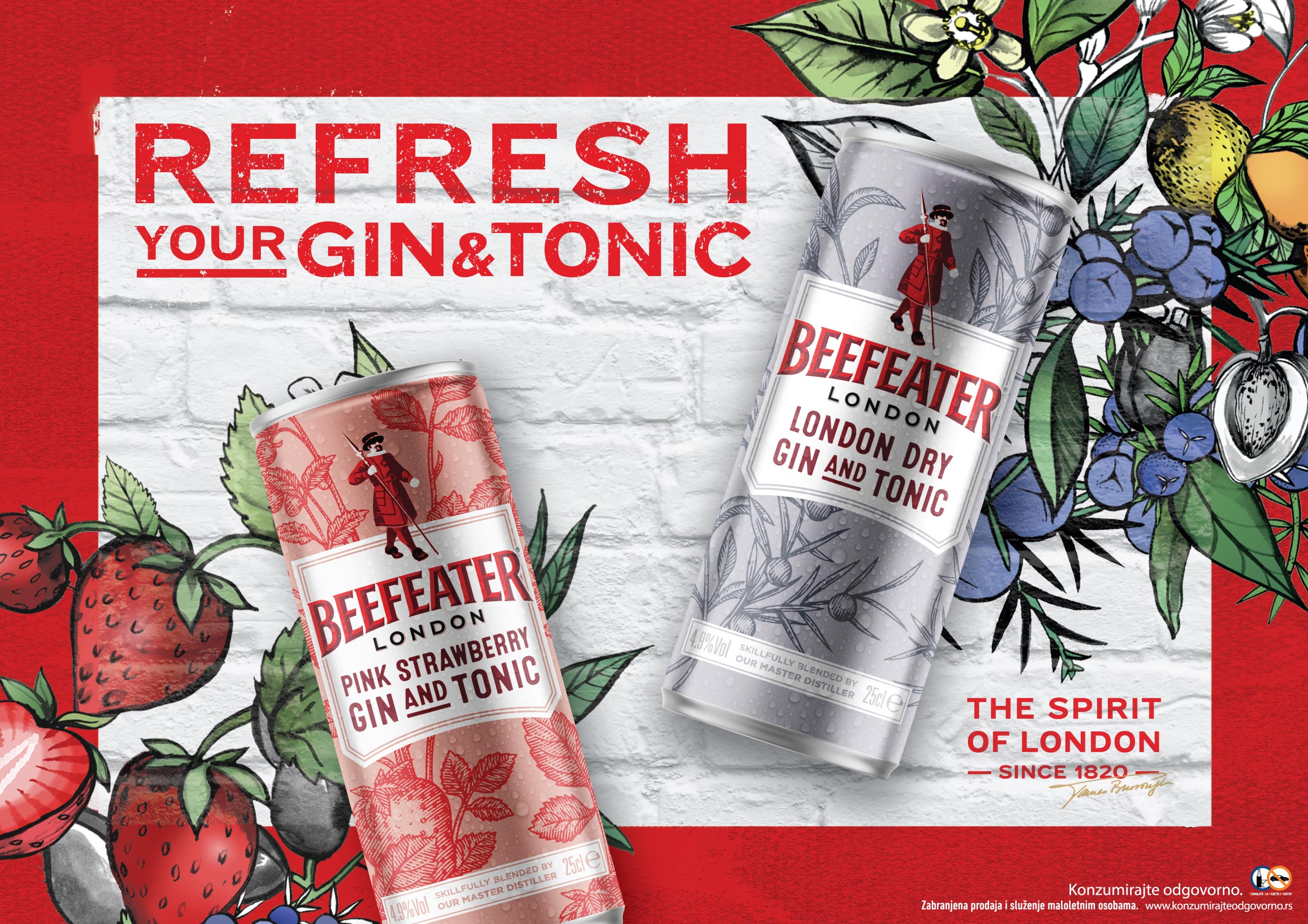 Kako je ovo leto drugačije od svih drugih, tako je čuveni brend džina Beefeater ponudio novi ukus leta – napravljen sa najnagrađivanijim džinom na svetu i osvežen tonikom. Beefeater London Dry džin i tonik je sada dostupan i kao koktel u limenci, kao i Beefeater Pink Strawberry džin i tonik kome osvežavajuće prirodne arome jagode daju sofisticiran ukus. Kako bi ugođaj bio potpun, oba pića se mogu naći u atraktivnim limenkama, u sivoj i roze boji, odmah spremnim za konzumaciju!