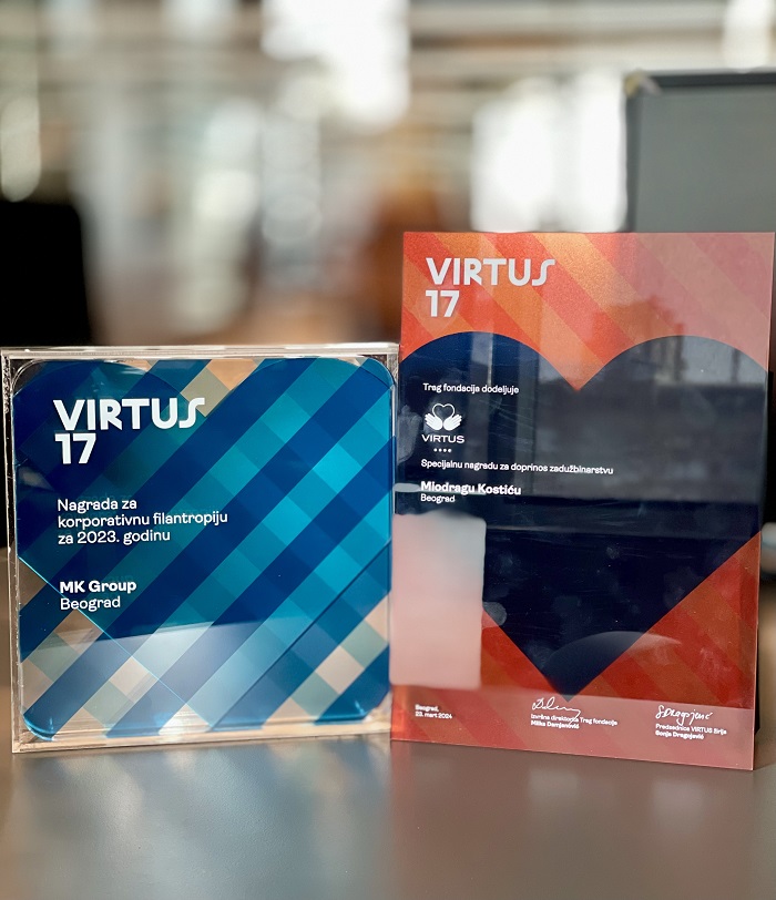 VIRTUS nagrada za korporativnu filantropiju dodeljuje se kompanijama koje se ističu po sistematičnom i promišljenom pristupu podršci zajednici, ali pokazuju i predanost učestvovanju u aktivnostima koje imaju širok društveni uticaj. MK Group je ovogodišnji dobitnik ovog značajnog priznanja zahvaljujući brojnim filantropskim aktivnostima koje je realizovala prošle godine, a među kojima se posebno izdvajaju donacije vrtićima u Srbiji i regionu.