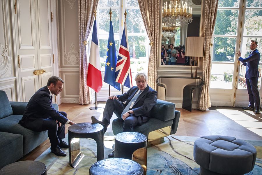 Britanski premijer Boris Džonson je u salonu Jelisejske palate pred snimateljima, na početku sastanka s francuskim predsednikom Emanuelom Makronom, šaleći se s domaćinom koji mu je pokazivao predmete u sobi, stavio nogu na sto.