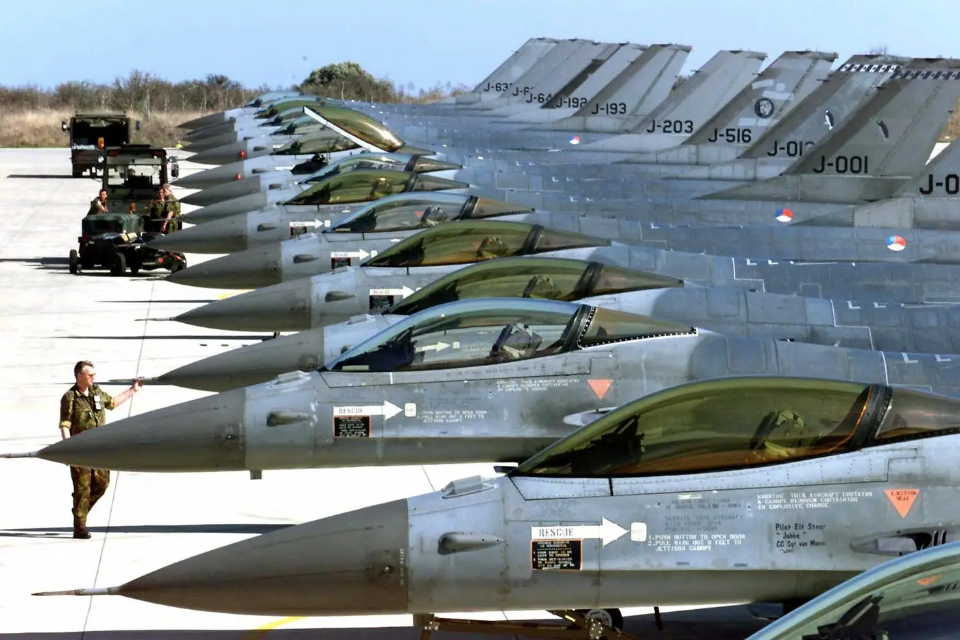 Za prelet pripremljeno je 11 „orlova“. Za borbene zadatke određeni su šest J-22 (broj 25167, 25168, 25174, 25175, 25204 i 25205) i pet NJ-22 (25507, 25525, 25531, 25532 i 25533). Dva od tih aviona pozajmljena su od VOC-a, po jedan jednosed i dvosed. Svi su bili sa motorima sa dodatnim sagorevanjem goriva, tzv. forsažem. Taj tehnički detalj je od važnosti za borbene letove pošto pilot može da računa sa većim potiskom jer kada se uključi forsaž raste sa 2 x 1780 daN na 2270 daN.