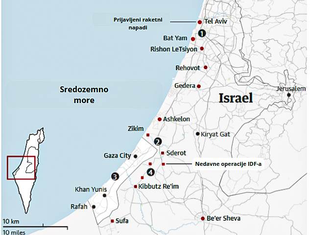 Hamas izvodi seriju raketnih napada na južni Izrael. Tačna lokacija mnogih raketnih udara nije poznata.