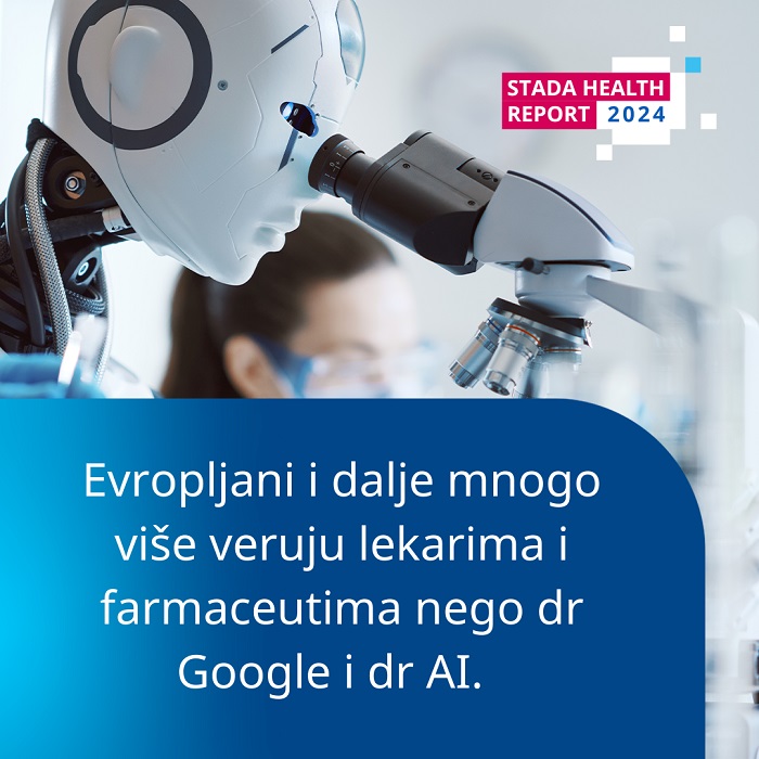 Zdravstveni izveštaj kompanije STADA za 2024. godinu pokazuje da 62% Evropljana ima pozitivan stav prema veštačkoj inteligenciji. Polovina (47%) veruje da dobro razume tehnologiju i uverena je da će ona biti od koristi društvu, dok je još 15 procenata otvoreno za istraživanje mogućnosti veštačke inteligencije. Ipak, kada je u pitanju njena upotreba u ličnoj zdravstvenoj zaštiti, većina Evropljana je i dalje suzdržana. Najpozitivniji odnos u prihvatanju veštačke inteligencije iskazuju Portugal (73%), Španija (70%), Rumunija (68%), Srbija i Mađarska (65%). Nasuprot njima, negativan stav ističu građani Uzbekistana (53%), Irci (48%), Finci (45%) i Švajcarci (44%).