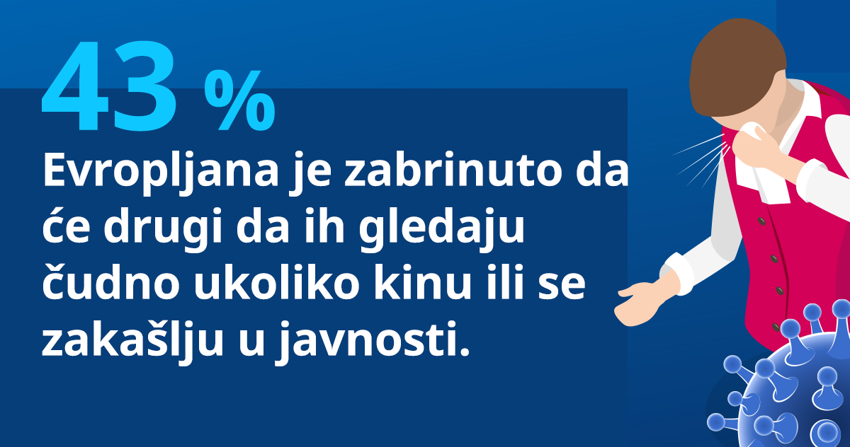 Istraživanje otkriva i da je danas 43% Evropljana zabrinuto kako će okolina reagovati ukoliko budu kijali ili kašljali u javnosti. Ova briga je posebno izražena među Austrijancima (55%), Portugalcima (53%) i Srbima (52%), dok o tuđem mišljenju po ovom pitanju, manje brinu Nemci (39%) i još manje Španci (30%).
