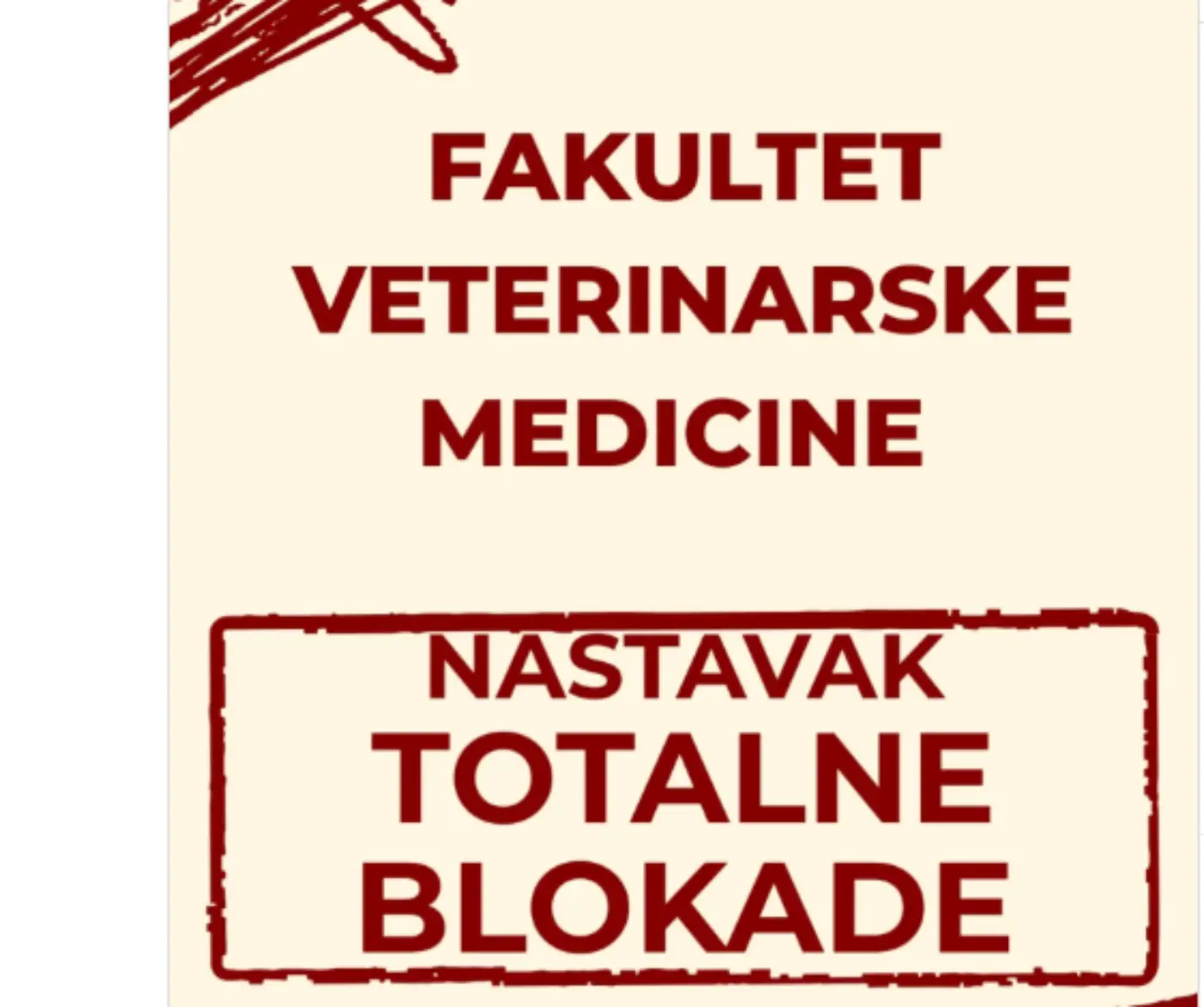 Fakultet veterinarske medicine je ponovo stupio u totalnu blokadu, objavio je N1.