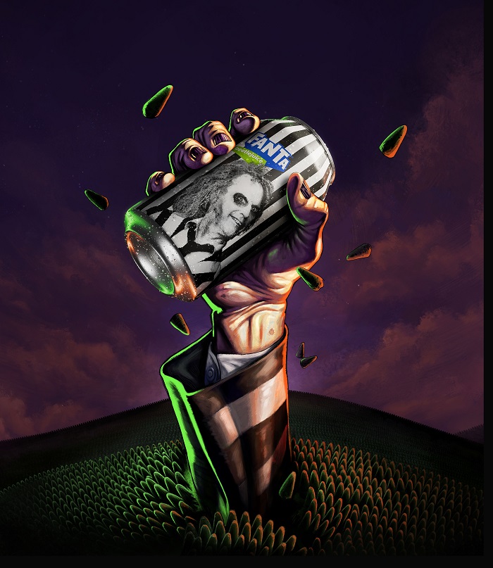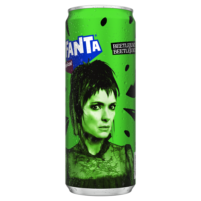 Asortiman Fanta ukusa takođe će dobiti i svoje modifikovane verzije sa likovima iz filma Bitlđus Bitlđus 2 – uključujući lik Astrid (koju glumi Džena Ortega) na mnogima omiljenoj Fanta Orange kao i lik Lidije Dic (koju glumi Vinona Rajder) na limenci Fanta Tropical.