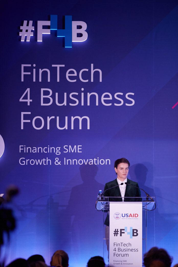 “Moram da izrazim svoje zadovoljstvo činjenicom da su javne finansije stabilne i da smo sada u mogućnosti da se još više okrenemo strukturnim reformama koje će dovesti do daljeg razvoja,“ rekla je premijerka Srbije Ana Brnabić. “Najbolji alat za snažan privredni rast je digitalizacija svih segmenata privrede i društva, o čemu govori i današnji prvi FinTek za Biznis forum. U 21. veku, konkurentnost male ekonomije kakva je naša mora biti bazirana pre svega na brzim i hrabrim kompanijama koje ulažu u nauku, inovacije i razvoj.”