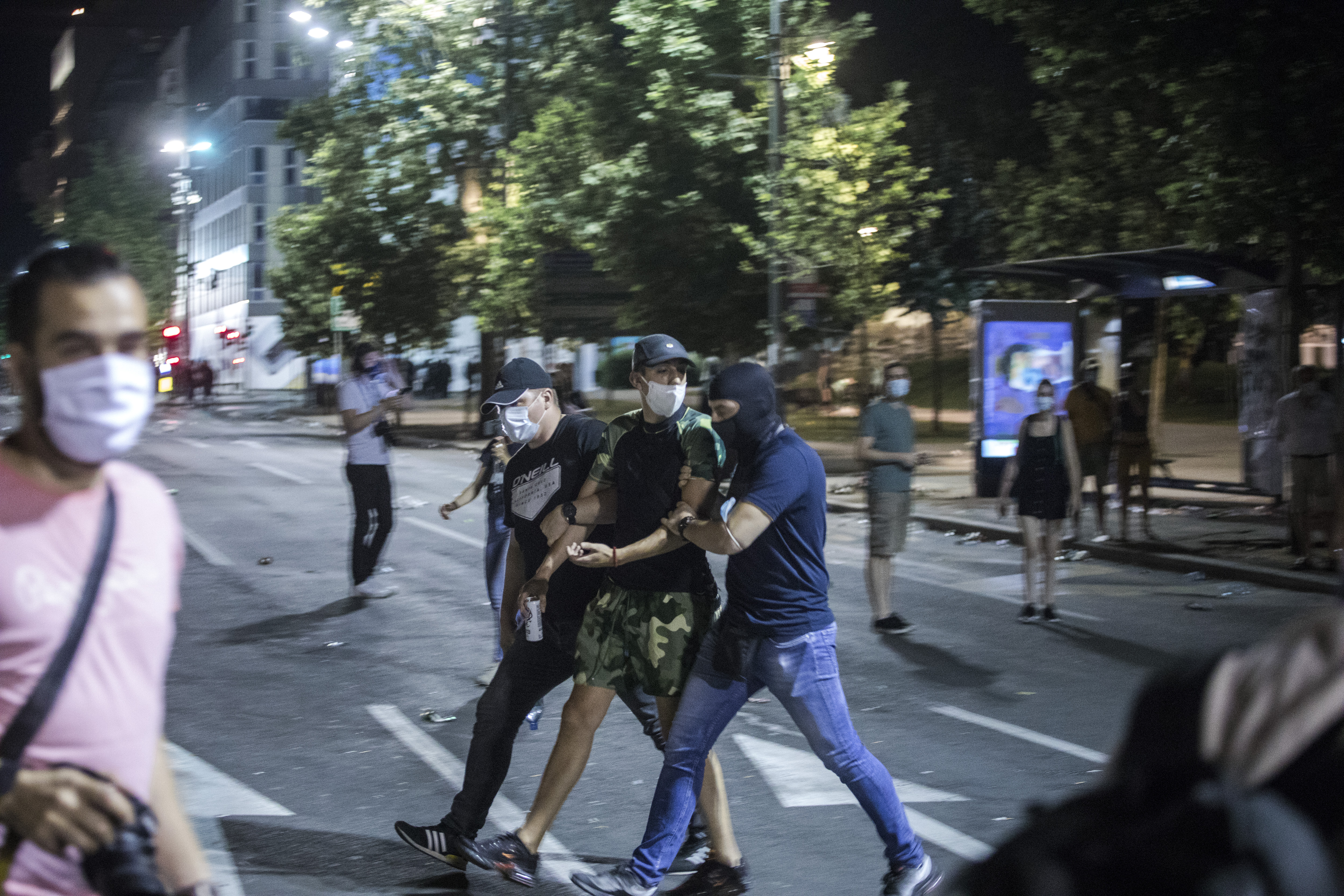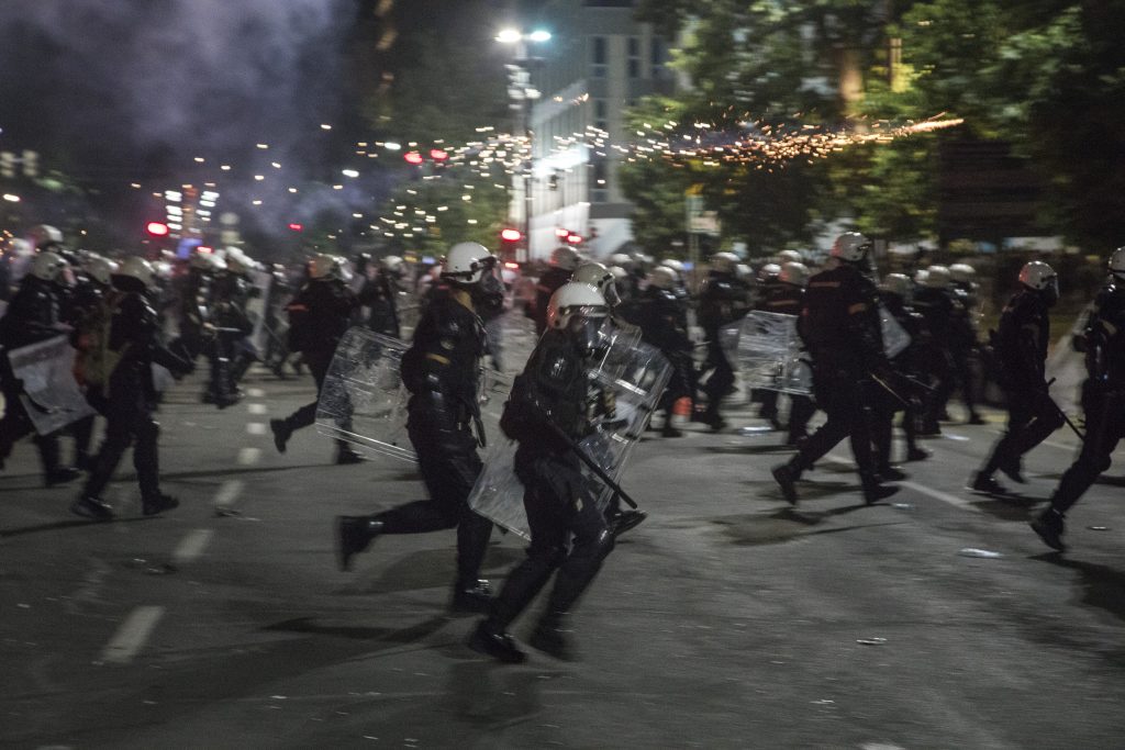 Policija je i potiskivala demonstrante iz više pravaca, a primećeno je i da je veći deo demonstranata koji je pravio nerede bio desničarskog usmerenja.