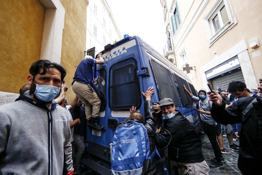 „Hoćemo revoluciju u Italiji. Konteova vlada nam se ne sviđa“, rekao je Frans presu neimenovani demonstrant.