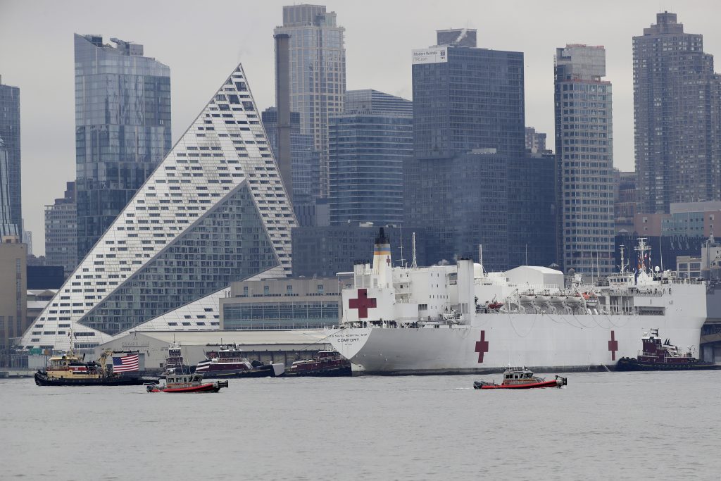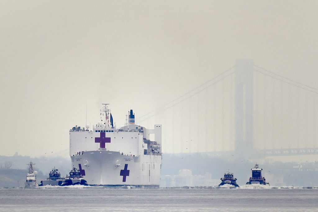 Vojni brod-bolnica sa 1.000 kreveta stigao je danas u njujoršku luku kako bi pomogao bolnicama suočenim sa velikim brojem obolelih od koronavirusa.