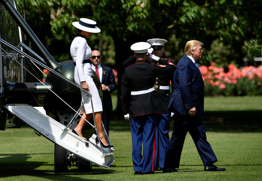 Helikopter koji je prevezao šefa Bele kuće i njegovu suprugu Melaniju sleteo je oko podne po lokalnom vremenu u baštu Bakingmeske palate gde su ih čekali britanski prestolonaslednik princ Čarls i njegova supruga Kamila, vojvotkinja od Kornvola.
