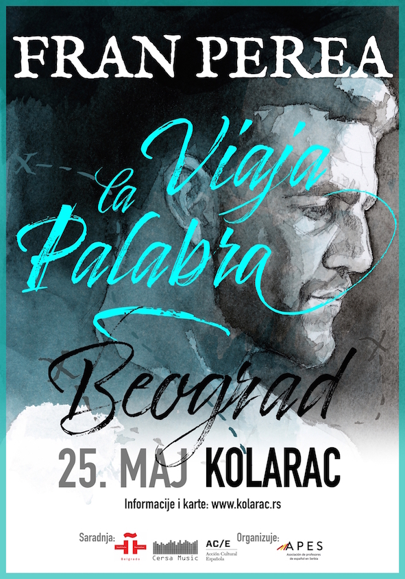 Španski glumac i muzičar Fran Perea predstaviće svoj projekat „Reč putuje” (Viaja la palabra) srpskoj publici ovog maja na čak dva koncerta, 23. maja u Novom Sadu (Studio M) i 25. maja u Beogradu (Kolarac) – dve noći koje obećavaju da će biti posebne. Ulaznice su već puštene u prodaju kako za Novi Sad, tako i za Beograd.