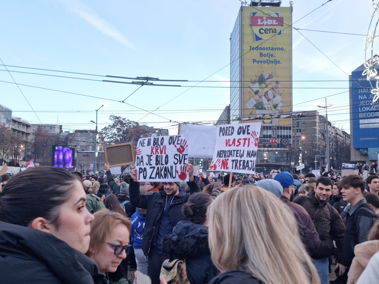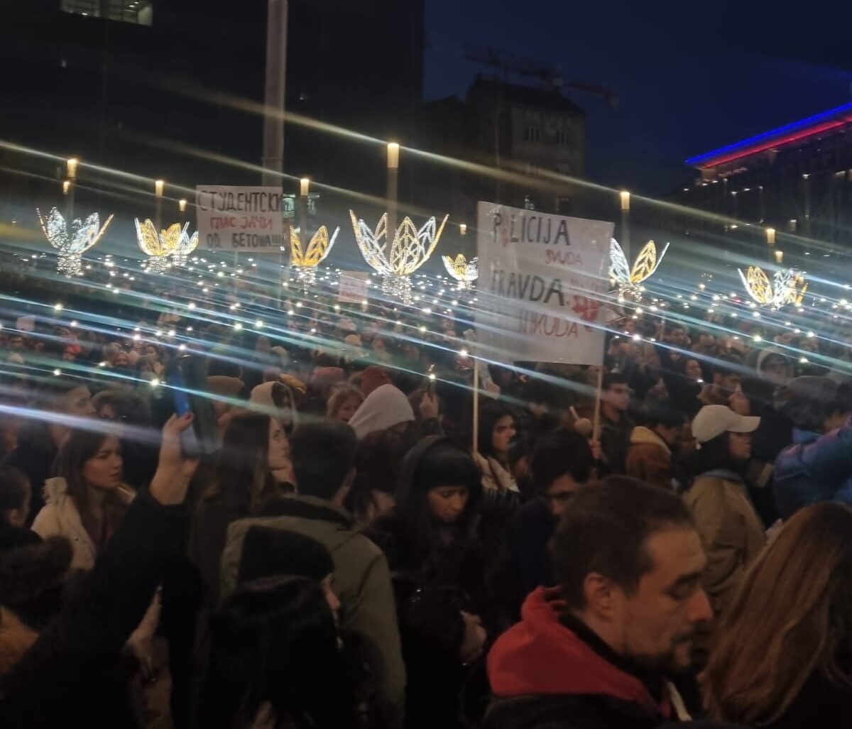 Određene gomile sa oboda mase pokušale su da miniraju ovaj plan, ali bezuspešno. Jer ih je tišina, koja je usledila, nadjačala. Bila je gromoglasna. U dogovoreno vreme svi koji su se s razlogom našli na Slaviji, svi studenti, svi koji su tu bili kao njihova podrška… ma svi, stali su i zaćutali. Podigli su visoko ruke u kojima su bili telefoni sa upaljenim svetlima, čineći najlepšu novogodišnju, uličnu rasvetu ovog decembra.
