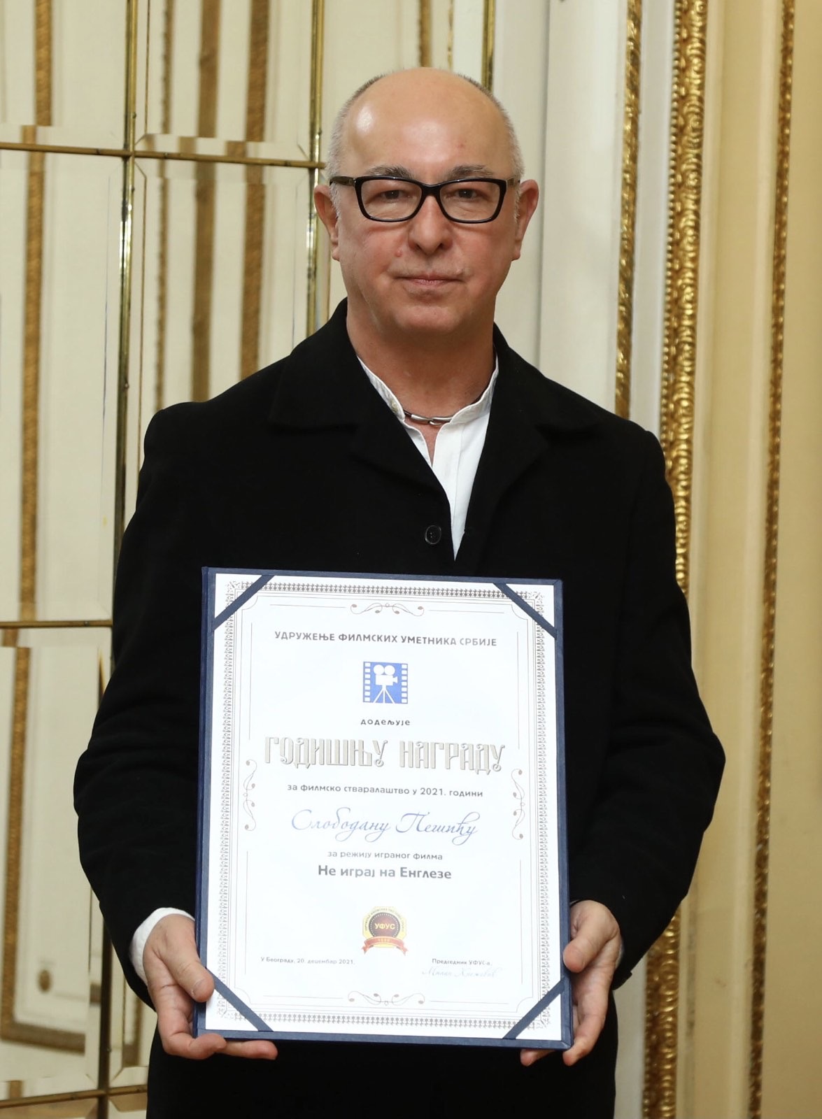 Udruženje filmskih umetnika Srbije dodelilo je juče prestižne godišnje nagrade UFUS-a za 2021. Godišnja nagrada za filmsko stvaralaštvo u 2021, u kategoriji dugometražnog igranog filma, pripala je Slobodanu Pešiću za režiju filma „Ne igraj na Engleze“.
