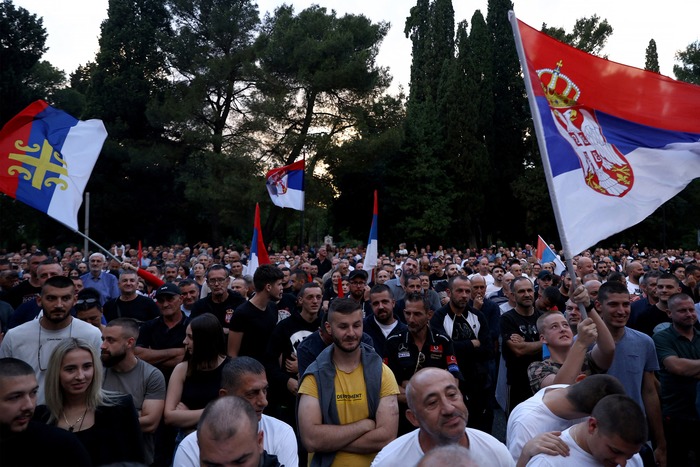 Moglo se čuti kako okupljeni pevaju pesme posvećene Kosovu i skandiraju „izdaja, izdaja“ i „Ratko Mladić“, „Rusija“…