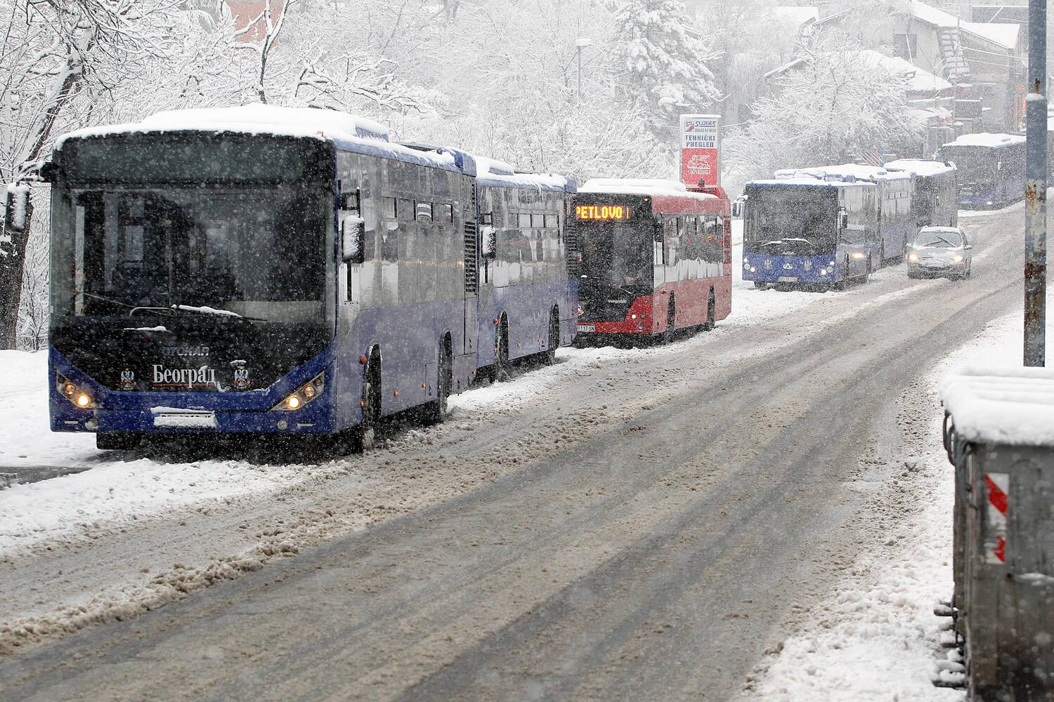 Na beogradskim ulicama nalazi se ukupno 1.445 vozila za prevoz putnika, a zbog snega koji od juče pada u prestonici, nekoliko linija vozi izmenjenom trasom ili je izmešteno sa svoje rute, rečeno je Tanjugu u Gradskom saobraćajnom preduzeću, prenosi N1.