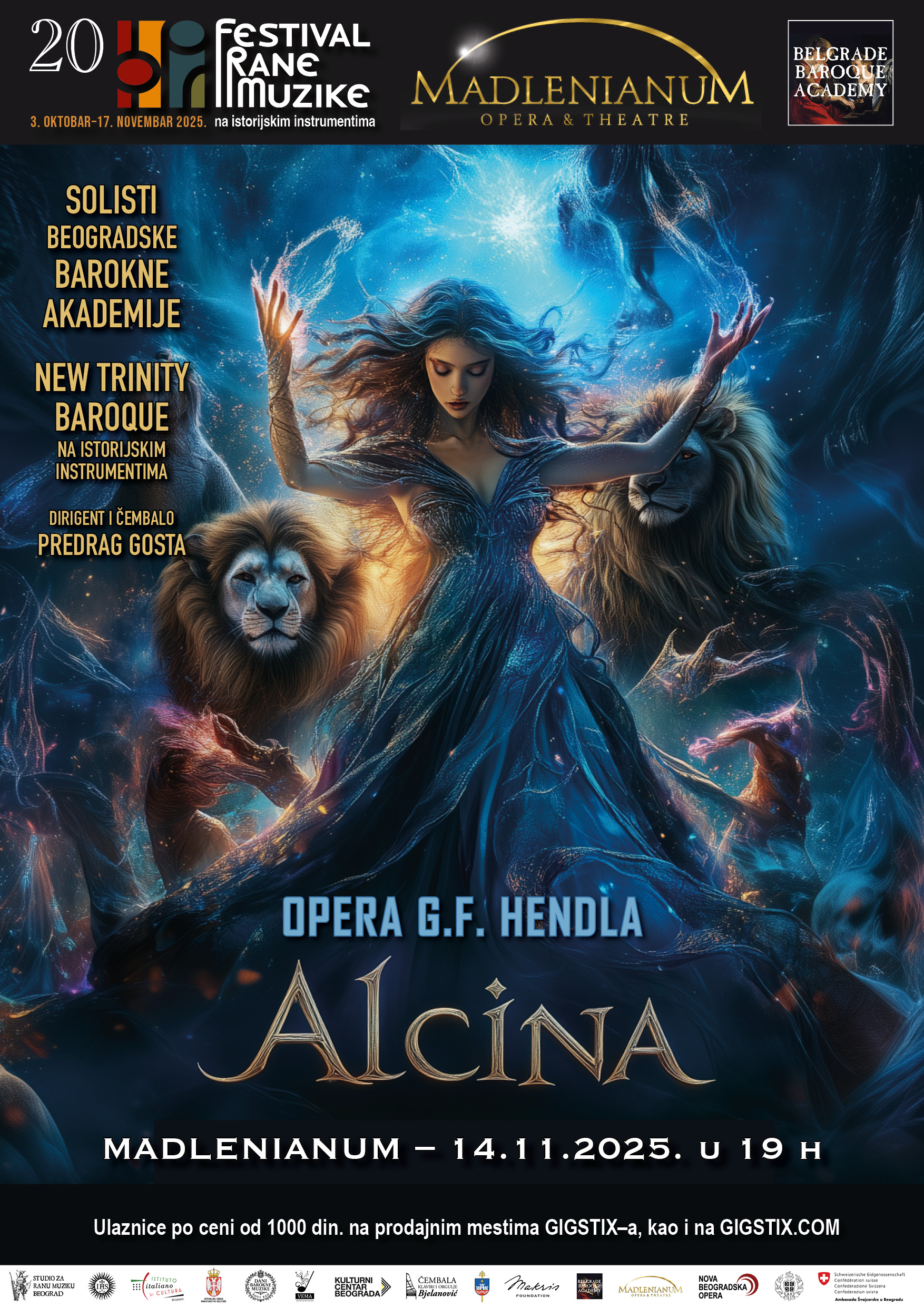 Jubilarni XX Festival rane muzike u Beogradu približava se svom vrhuncu, u petak, 14. novembra u 19 časova, u Operi i teatru Madlenianum, biće izvedeno barokno remek-delo „Alćina“ Georga Friedricha Händela, u izvođenju ansambla New Trinity Baroque i polaznika XXIV Beogradske barokne akademije.